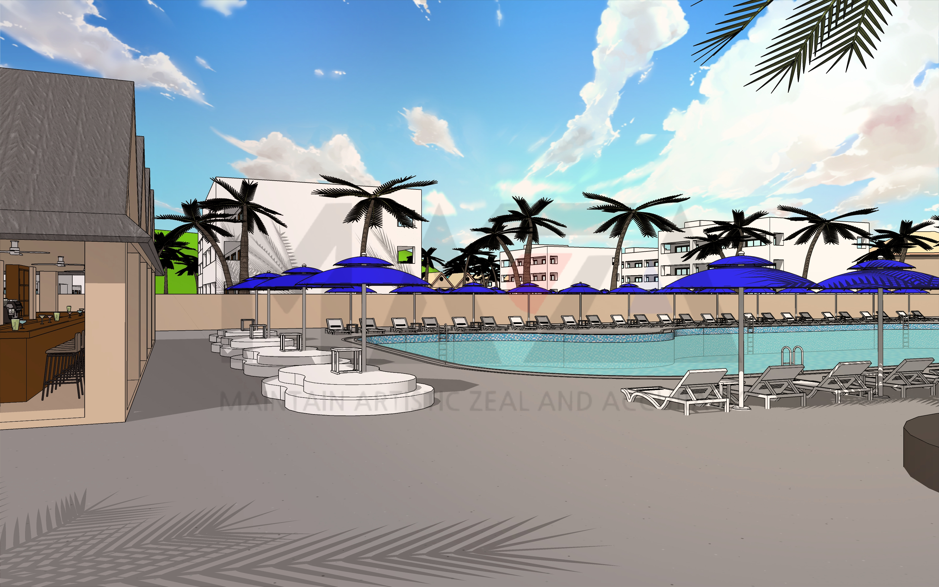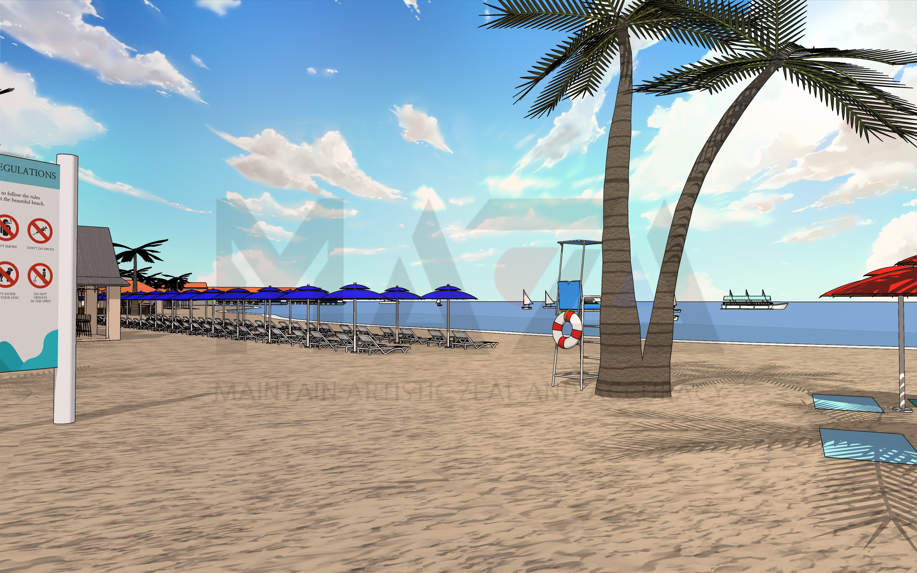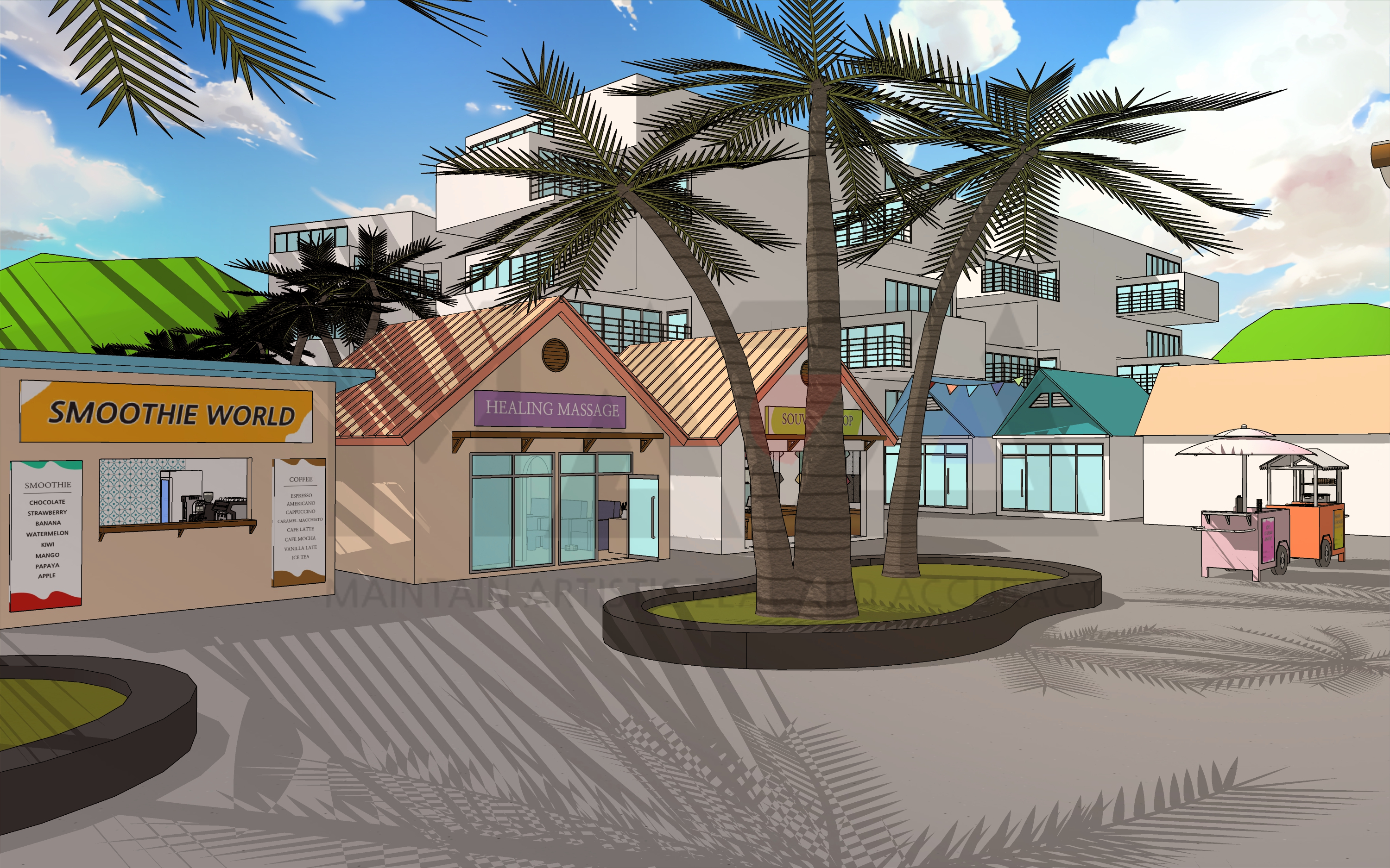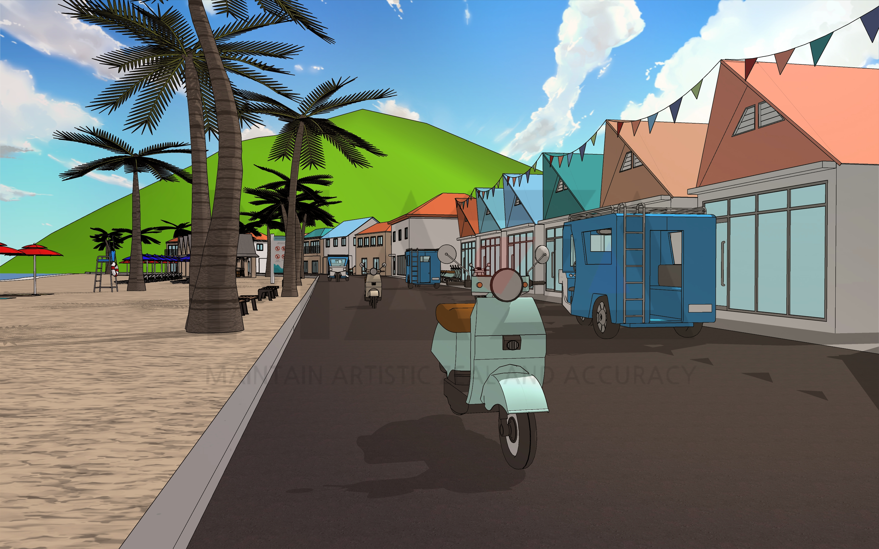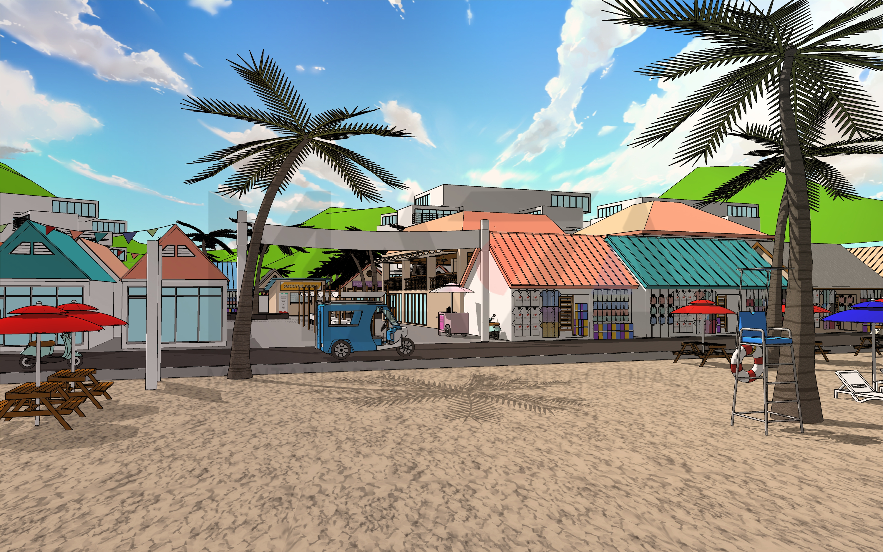 웹툰배경 디자이너 마자(MAZA)입니다. 이번에 소개할 웹툰배경은 [여름 해외 휴양지 섬마을] 입니다. 해외 휴양지와 관련된 장면 연출을 위한 웹툰 배경을 제작해보았습니다.
