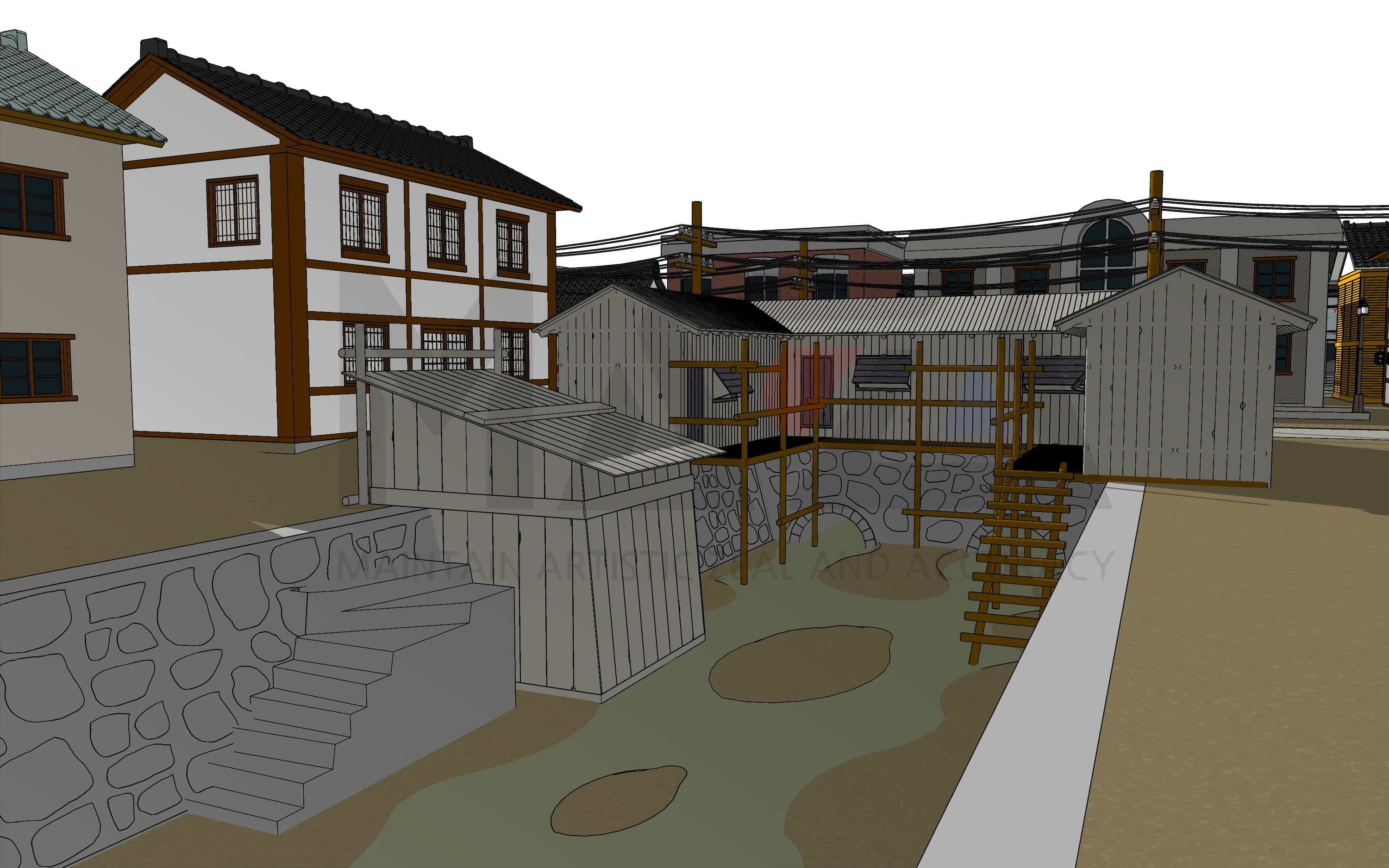 이번에 제작한 일제강점기 거리 배경은 일제강점기 시대때의 대한민국의 어느 거리를 모티브로 삼아 제작을 하게 되었습니다. 보통 일제강점기 시대와 관련된 웹툰배경 및 3D 리소스의 경우 학교나 백화점이 있는 상가거리, 은행이나 경찰서같은 기관위주로 배치된 상품들이 많은데요. 저는 이번에 좀 더 색다르게 거지촌이 들어간 일반적인 거리를 웹툰배경으로 제작해봤습니다. 서민들과 거지들이 공존하는 거리를 3D 리소스로 제작했지요.이번 배경은 위에서도 말씀드린 것처럼 독립운동 장면을 연출하거나 일제강점기 관련 시대물 혹은 회귀물 장르에서 활용하실 수 있으실 듯 합니다. 영화세트장에 데이트를 하러간 커플의 모습도 연출하실 수도 있으며, 영화세트장에서 배우가 촬영하는 장면도 연출할 수 있다고 생각이 드네요. 이처럼 2만원 이하의 가격으로 다양한 장면에서 활용이 가능한 웹툰배경세트이니 웹툰작가분 및 지망생분들께서는 많은 관심부탁드립니다.