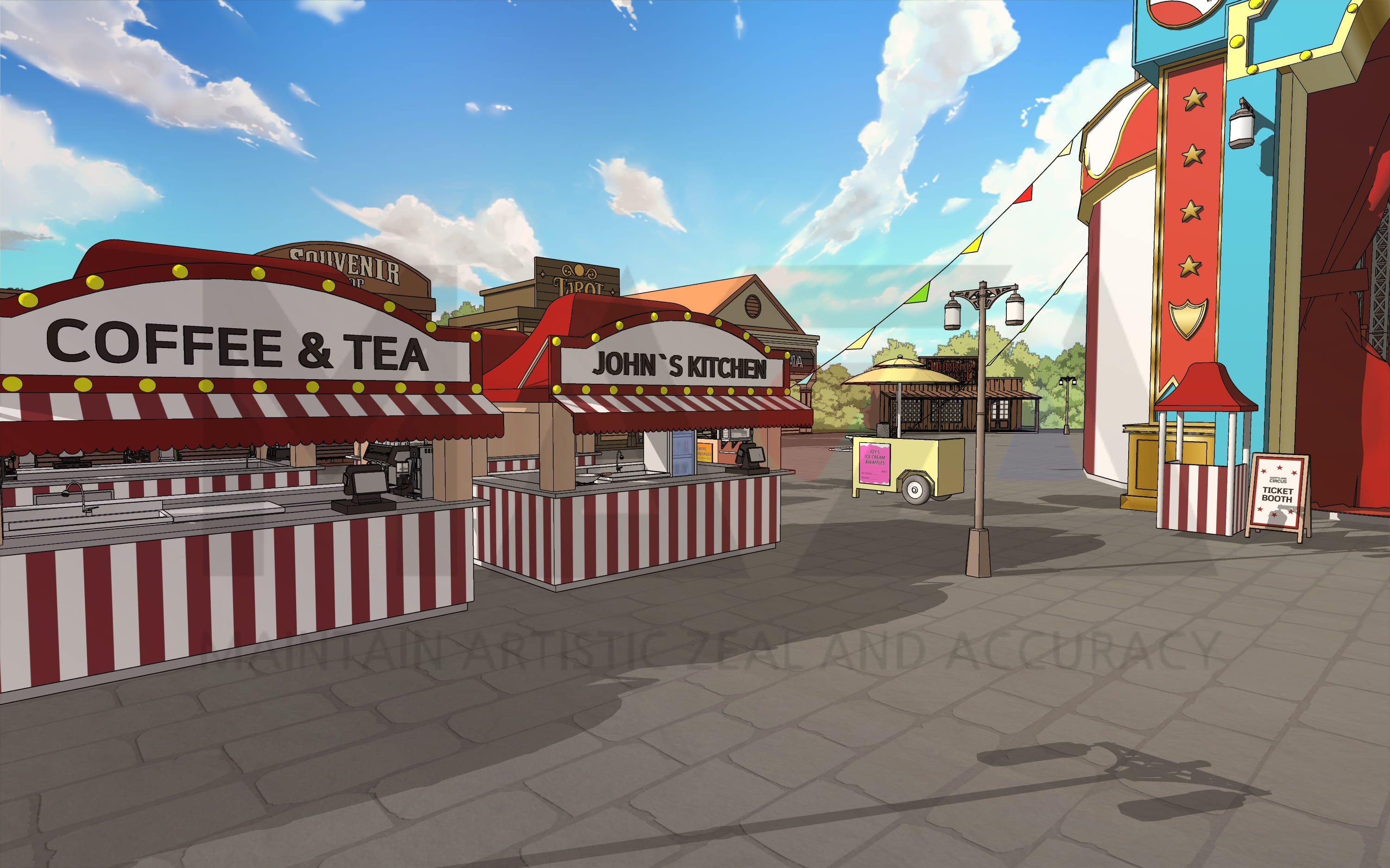웹툰 배경 디자이너 마자(MAZA)입니다. 이번에 소개할 웹툰 배경은 '미국 서부 시골의 작은 서커스 놀이공원'입니다. 웹툰의 글로벌화가 계속 진행되면서 독특한 컨셉의 해외 배경을 찾으시는 작가분들이 있으실 것 같아 한 번 제작을 해봤습니다.