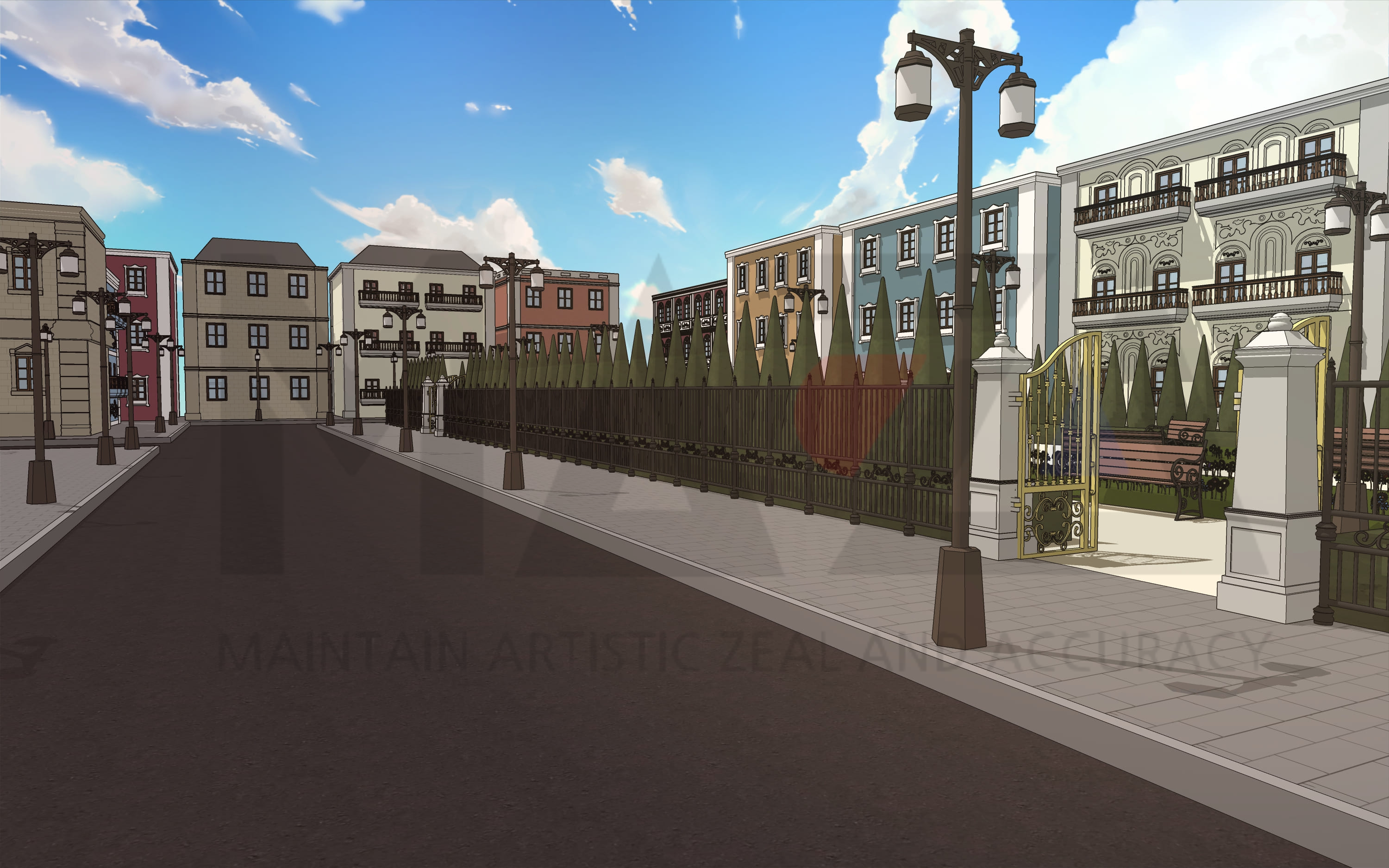 이 스케치업 배경의 경우 현대물에서 유럽 여행을 연출하시기에도 좋고, 로맨스 판타지에서 연인이 같이 공원을 산책하거나 데이트하는 장면을 연출하기에도 좋은 배경이 될 것이라 생각됩니다.