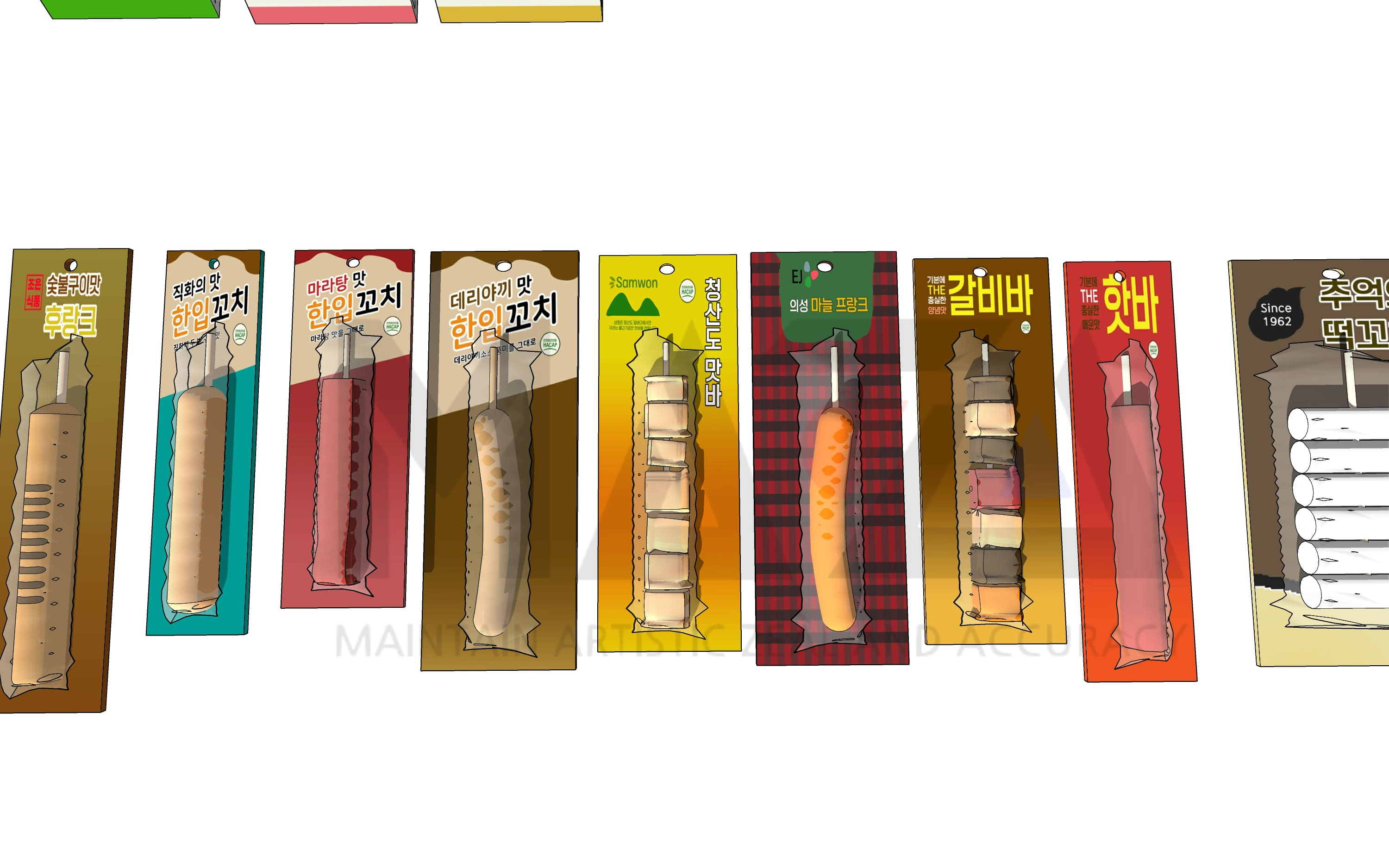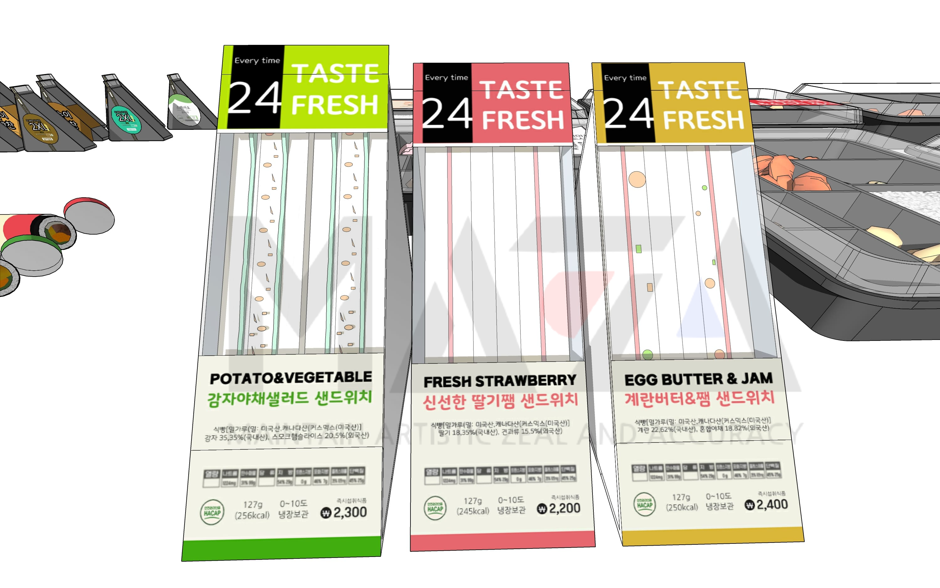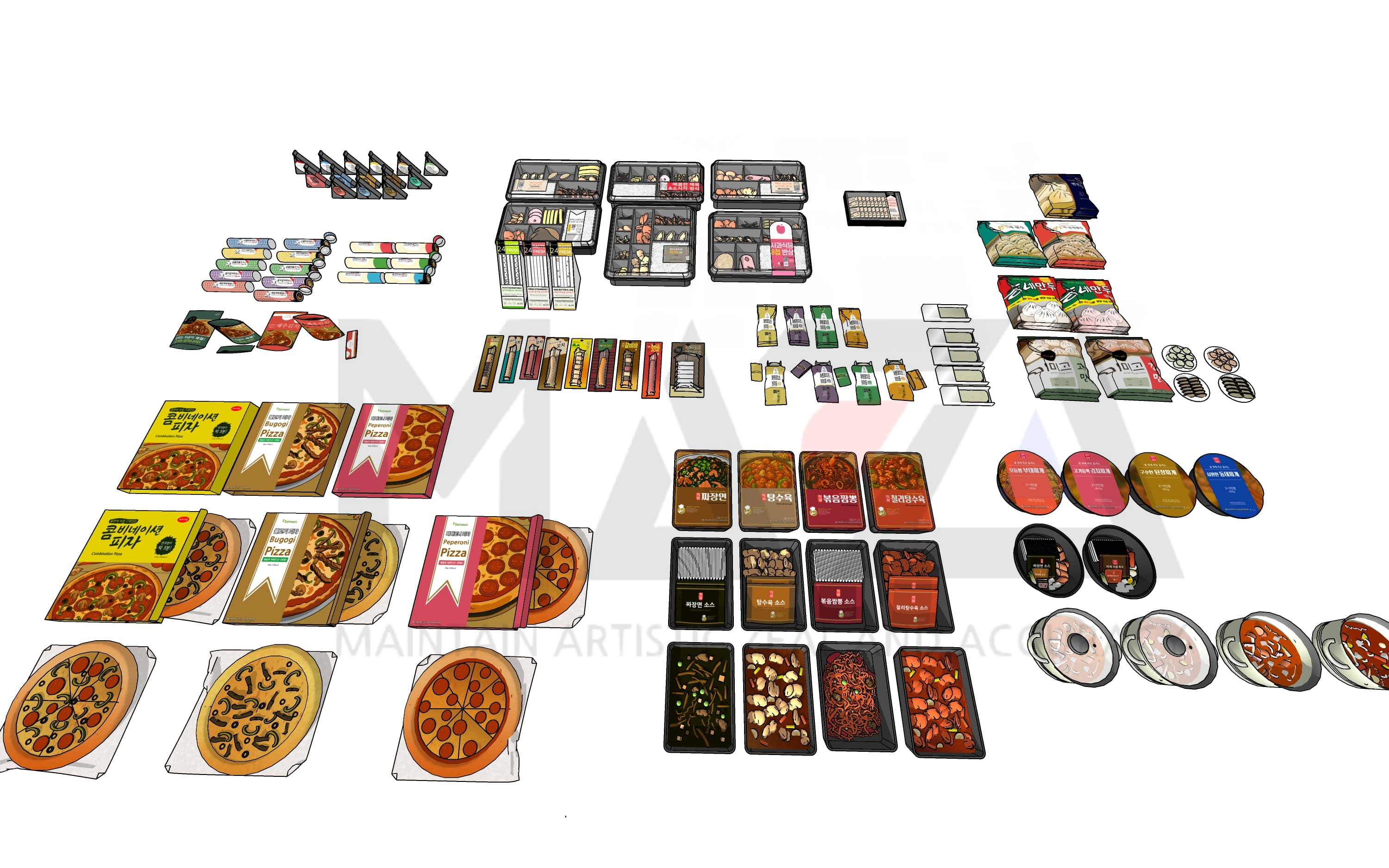 이번에 제작한 [편의점 냉동 인스턴트 식품 11종] 배경 소품은 우리가 편의점에서 흔히 사 먹는 냉동식품과 인스턴트 식품들을 소품으로 만들어놓은 스케치업 배경 세트입니다. 이미 실력 좋으신 다른 배경작가 분들께서 편의점 배경 외에도 라면이나 주류,음료등 편의점에서 파는 식품들을 웹툰용 소품으로 만들어 놓으셨지만, 반면 냉동식품이나 기타 다른 인스턴트 식품에 대한 웹툰 배경 소품은 잘 없어 보여 디자이너 마자가 직접 제작하게 되었습니다.