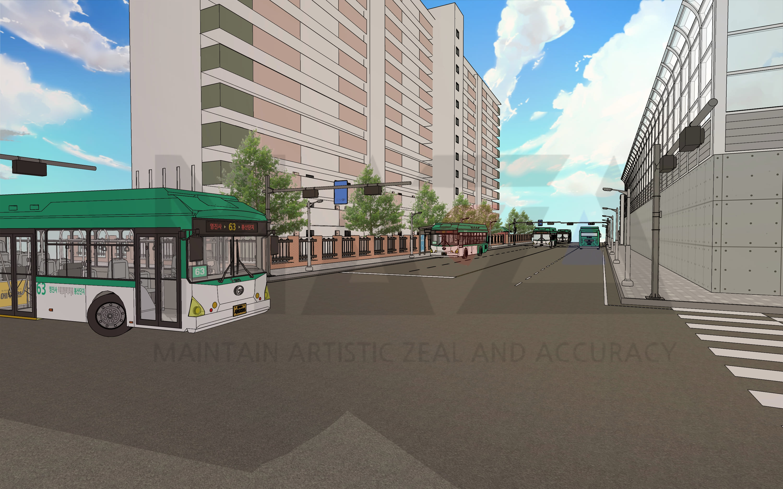 웹툰 배경 디자이너 마자(MAZA)입니다. 이번에 소개할 웹툰 배경은 '수소전기버스 종점(공영차고지)'입니다. 일상물이나 현대물 장면을 연출하다 보면 대중교통 배경이 필요할 때가 많습니다. 그중에서도 버스는 자주 사용되는 배경이기도 하지요. 이미 시중에는 버스 소품이 많이 있지만 정작 '버스 종점'과 관련된 배경은 없고, '전기 수소 버스'처럼 요즘 시대에 나온 버스 소품이 없는 까닭에 이번에 제작하게 되었습니다.