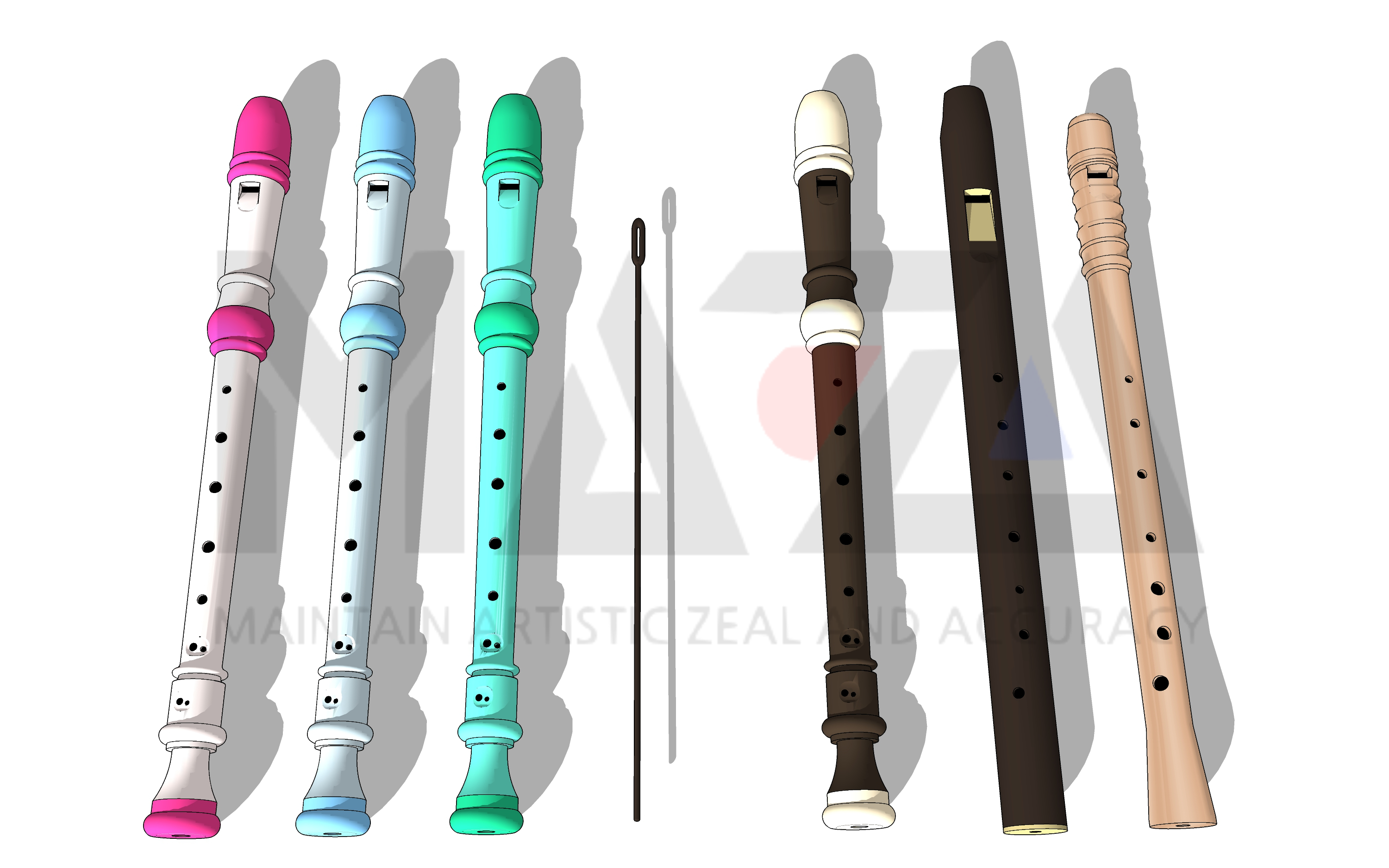 참고로 리코더 악기 세트는 크게 '소프라노 리코더'와 '베이스 리코더'로 구성되어 있습니다. 학생들이 음악 시간에 주로 사용하는 작은 리코더는 '소프라노 리코더'이고, 반면 전문 연주가들이 사용하는 큰 리코더는 '베이스 리코더'라 보시면 되는데요. 특히, 소프라노 리코더는 다양한 장면에서 사용하실 수 있도록 모양이 약간 다른 두 가지 타입을 더 넣었고, 여기에 추가로 리코더 가방까지 제작하였습니다. 이번에도 디자이너 마자(MAZA)가 제작한 배경 소품이 작가님들의 작업 환경 개선에 조금이나마 도움이 되었으면 좋겠습니다. 감사합니다.