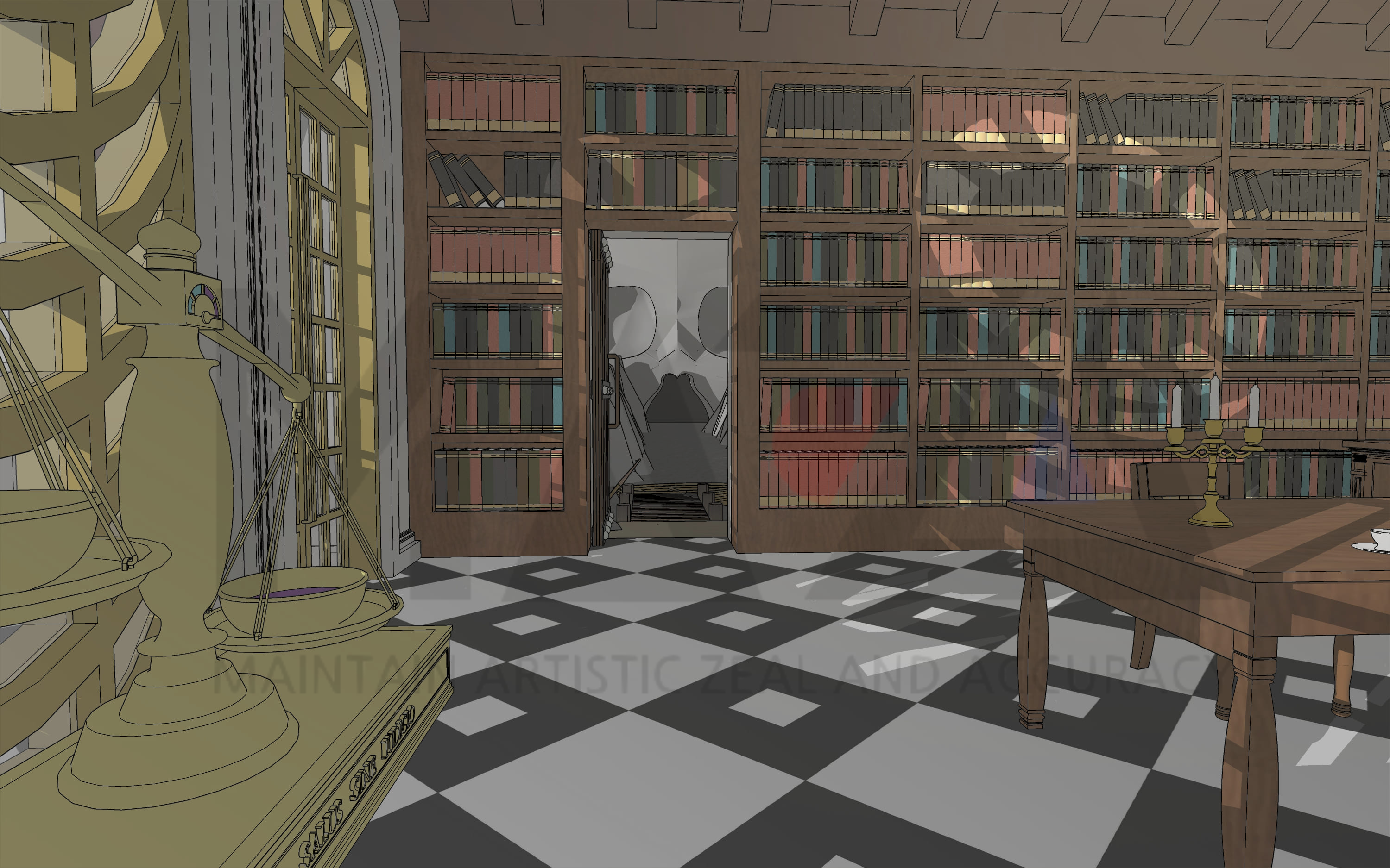 참고로 제가 상상한 이 작은 집은 '저울의 집' 또는 '심판의 집'이라 불리는 곳으로 망자가 살아생전 본인이 쌓은 덕과 지은 죄의 총량을 무게로 재어 망자의 천국과 지옥행을 결정하는 곳입니다. 이곳에서는 새롭게 탄생할 인간과 환생할 인간을 땅으로 내보내고, 수명이 다하여 돌아온 망자를 다시 받아들이지요. 망자가 이 집에 도착하면, 이곳에서 업무를 보는 망자 안내인, 즉 사자는 망자에게 차를 먼저 건네주며 잠시 얘기를 나눕니다. 차를 마신 후, 망자는 '심판의 저울' 앞에 서게 되며, 망자가 저울 앞에 서게 되는 순간 저울 위에 있는 심판의 눈에서 망자 몸 안에 있는 모든 기운을 빼냅니다. 이 기운들은 망자가 살아생전에 마일리지처럼 쌓았던 선행과 악행의 기운들로 심판의 눈은 망자의 몸속에 있는 선과 악의 기운들을 모두 저울로 빼내어 망자가 생전에 했었던 선행과 악행들을 무게로 잽니다. 'Nulla Salus Sine Iudicio(심판 없이는 구원도 없다)'. 저울에 적힌 문구처럼 모든 망자는 구원받기 위해 저울 앞에서 심판받습니다. 만약 선행의 기운이 더 무거우면 망자는 당연히 천국으로 가겠지만 악행의 기운이 더 무겁게 되면 망자는 지옥으로 가게 됩니다. 비록 죄는 지었으나 반성하는 망자에게는 어둠 지옥으로, 반면 죄를 반성하지 않거나 생전 극악무도했던 망자라면 영원히 고통받는 불지옥으로 가겠지요.
