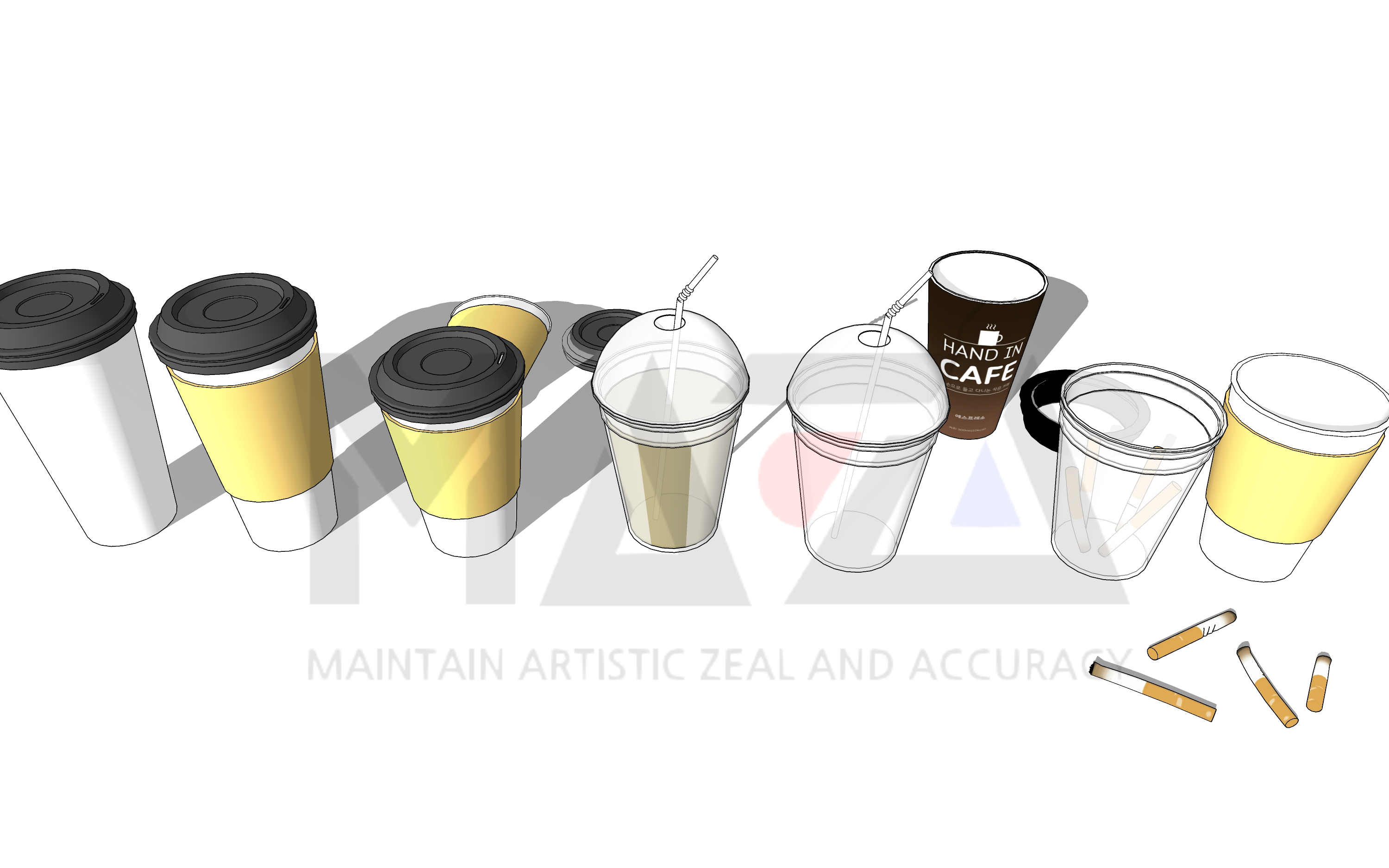 카페에서 자주 쓰이는 종이컵과 플라스틱 컵들을 만들었고, 그외에도 편의점에서 파는 커피컵을 만들었습니다.