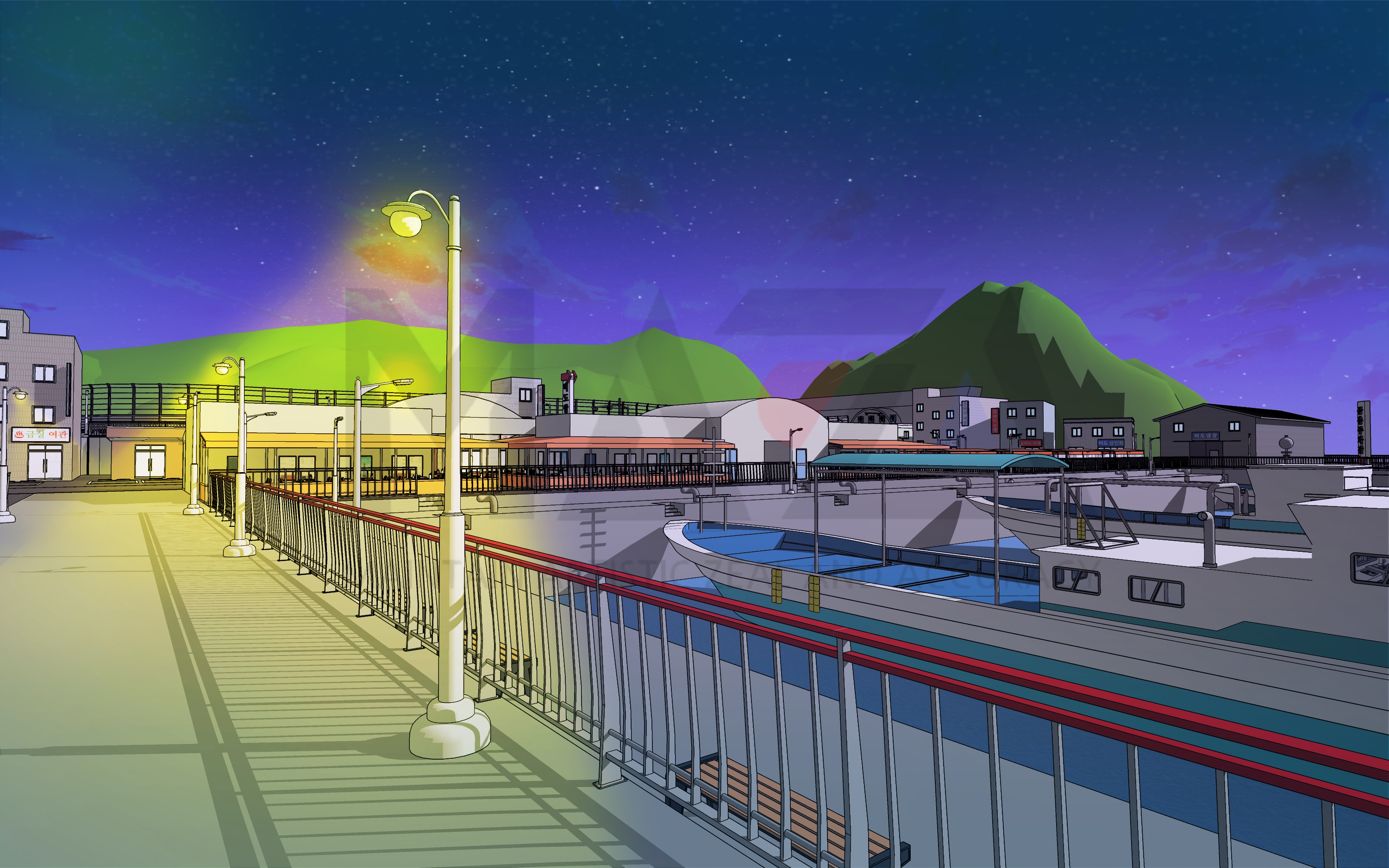 웹툰배경 디자이너 마자(MAZA)입니다. 이번에 소개할 웹툰 배경은 [방파제 포장마차 거리]인데요. 이번 웹툰 배경 상품은 방파제가 있는 항구에 포장마차 거리를 같이 곁들여서 만들면 어떨까 하는 생각에 제작을 하게 되었습니다.