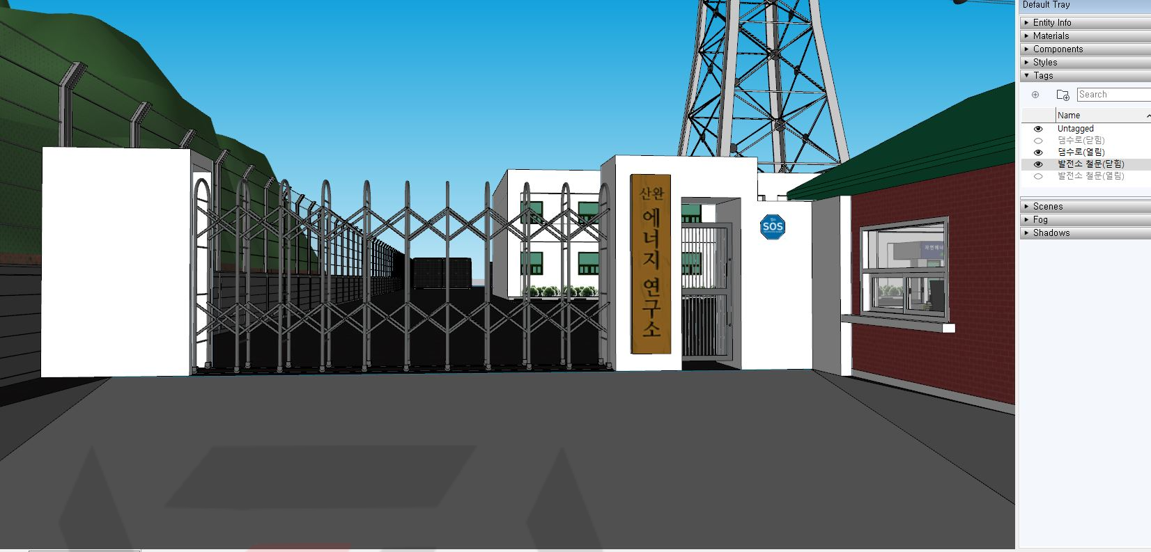 아! 그리고 이건 사소한 거지만 댐 수로와 에너지연구소 메인문을 열고 닫을 수 있도록 태그로 설정을 해두었습니다.(*에너지 연구소 메인문의 경우 '발전소 철문'이란 이름으로 태그를 걸어두었습니다.)