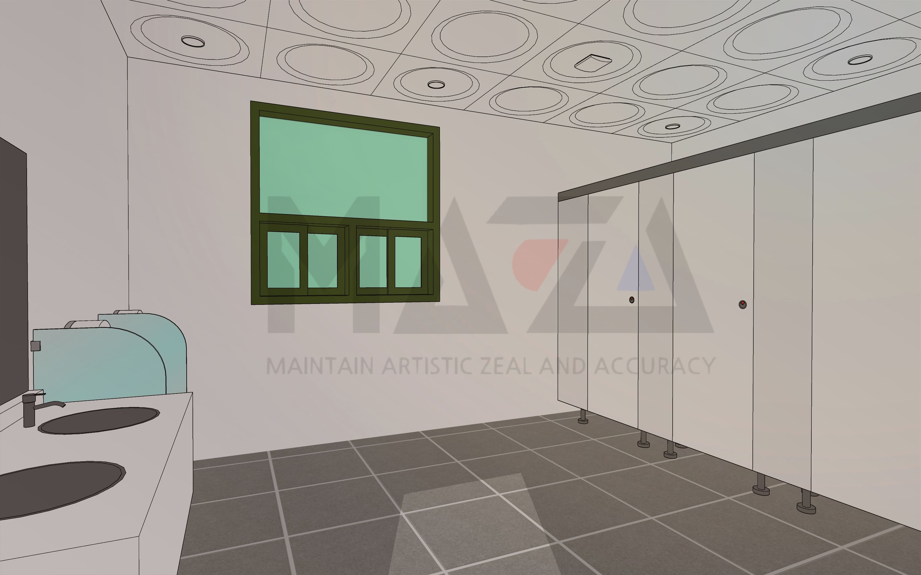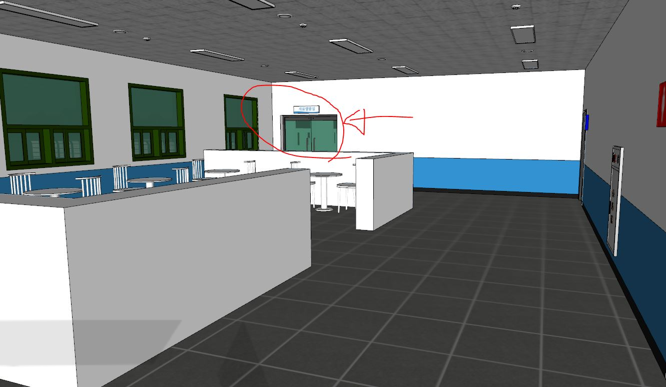 에너지 연구소 내에 있는 화장실로 이 공간 역시 따로 제작하였습니다. 댐 발전소 관련 장면이 아니더라도 다양한 장르에서 유용하게 사용하실 수 있도록 가볍게 제작을 해보았습니다. 사진의 경우 남자화장실만 올렸으나 남녀 화장실 모두 구성을 해놓았으며, 화장실 모든 문에 다이나믹 동적요소를 적용시켜 놓았습니다.