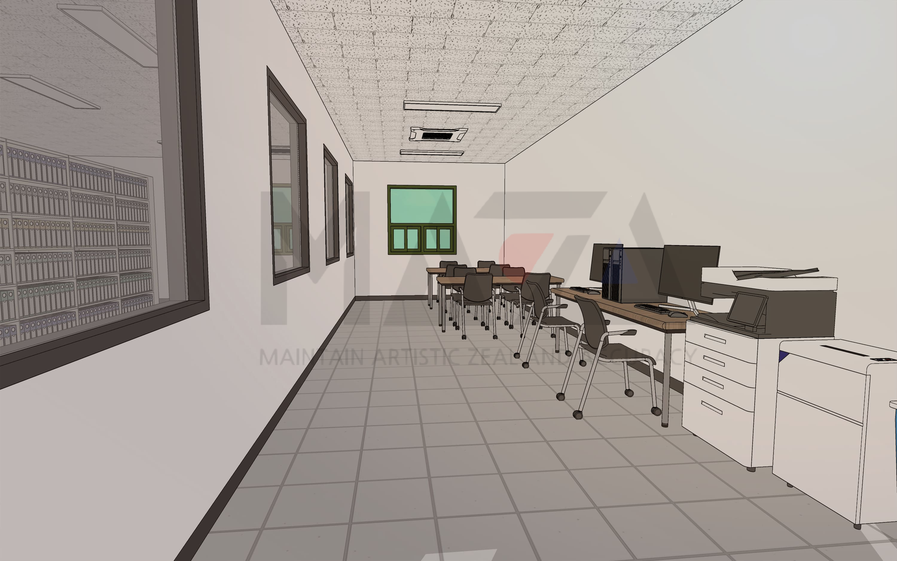 에너지 연구소 내에 있는 연구실(사무실)과 대회의실로 이 부분 역시 따로 만들었습니다. 내부 공간은 각각 1인 연구실로 구성을 해놓았으며, 연구실 및 대회의실 문 모두 다이나믹 동적요소를 적용해놓았습니다.